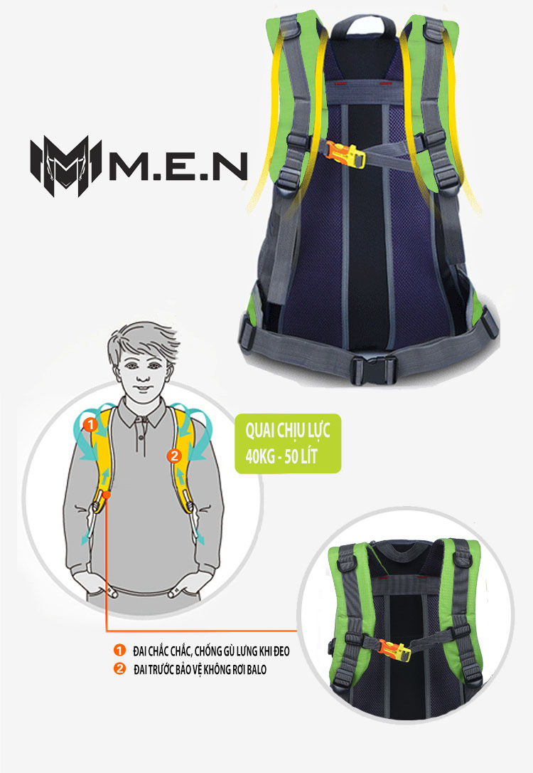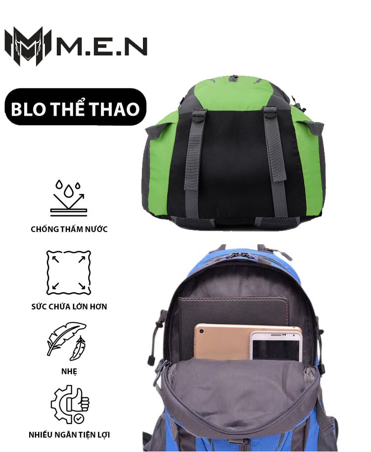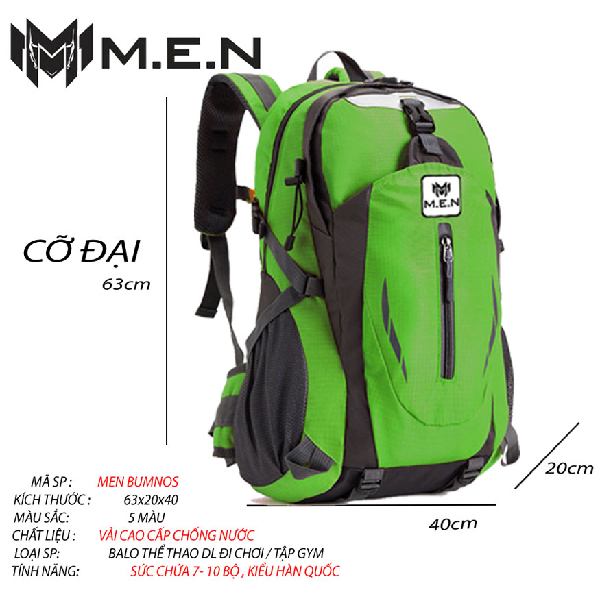 Balo du lịch cỡ đại 40L Bumno. chất liệu vải NILON (Polyester): Vải có tác dụng chống thấm rất tốt do được cán màng PU hoặc PVC ở mặt trong. Vải nylon thường được dùng để may riêng dòng balo phượt. Đây là chất liệu tổng hòa giữa các đặc tính nổi trội polyurehthane với nhựa nhiệt dẻo. Sự phối hợp giữa tính đàn hồi và hiệu quả gia công của nhựa nhiệt dẻo nên loại chất liệu này rất mềm, và dai có độ bền tốt và khả năng chịu lực cao. Do đó, chất liệu này được sử dụng khá phổ biến hiện nay trong rất nhiều ngành công nghiệp may xuất khẩu tại đài loan cho ngành dành cho mọi iteam đúng gru balo phượt thủ.