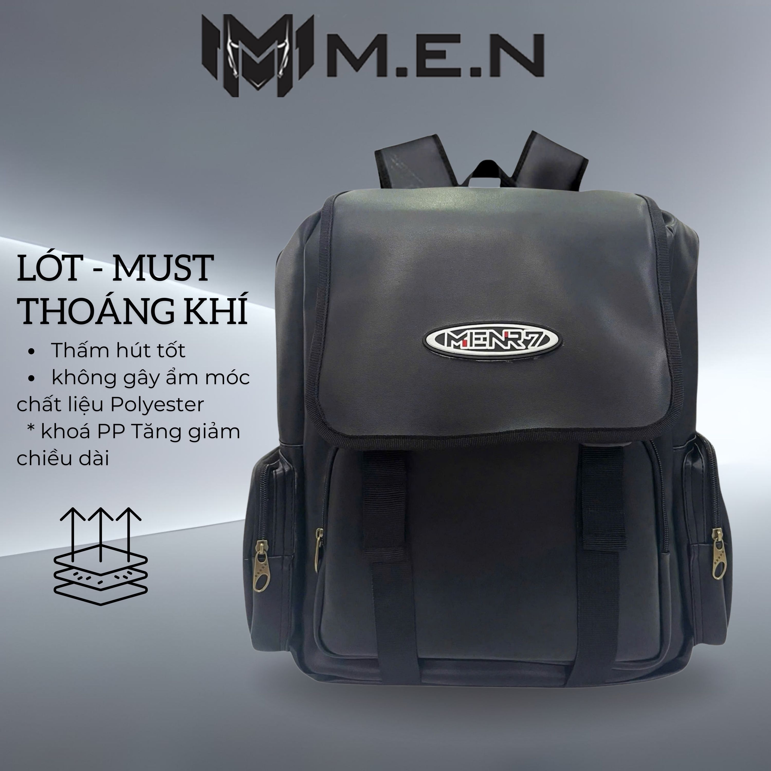 Ngăn chính rộng rãi sức chứa vừa 5-6 bộ đồ và laptop 16inch có đệm chống sốc.