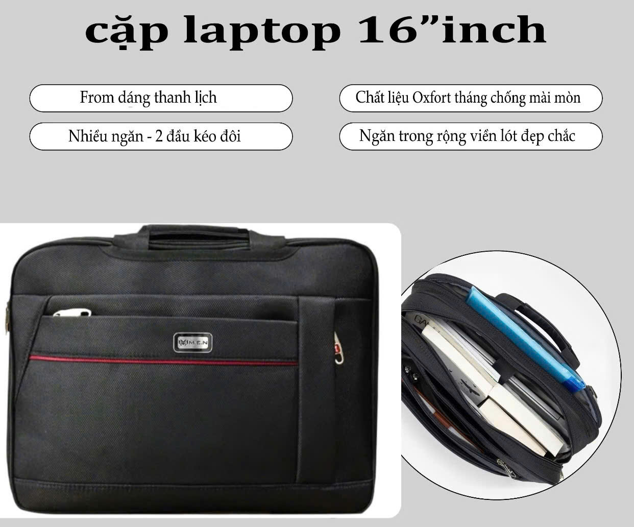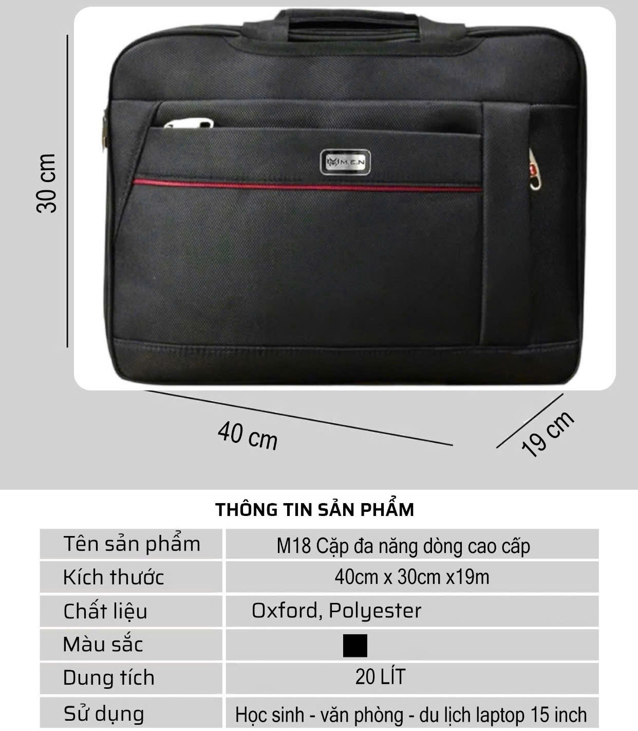 ⇒ Có khả năng chứa các loại laptop từ 14 – 17”, CẶP tạo sự thời trang hiện đại, mà vẫn mang những tiện ích đa năng và nhỏ gọn thanh lịch cho người sử dụng.