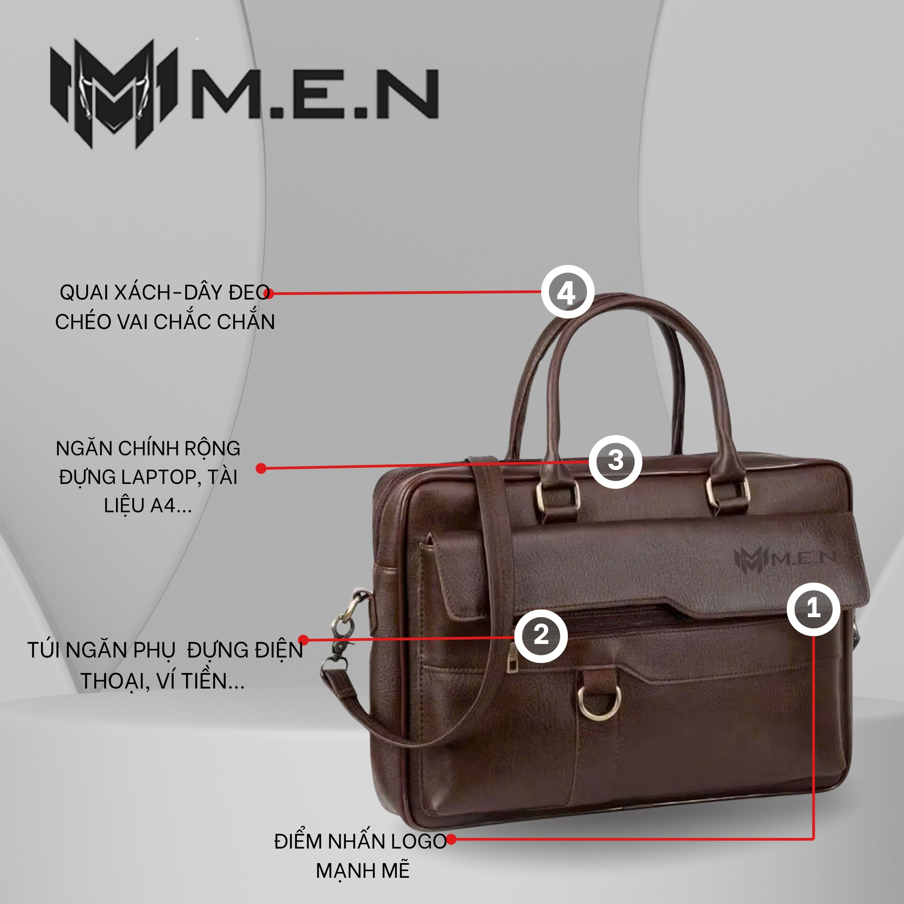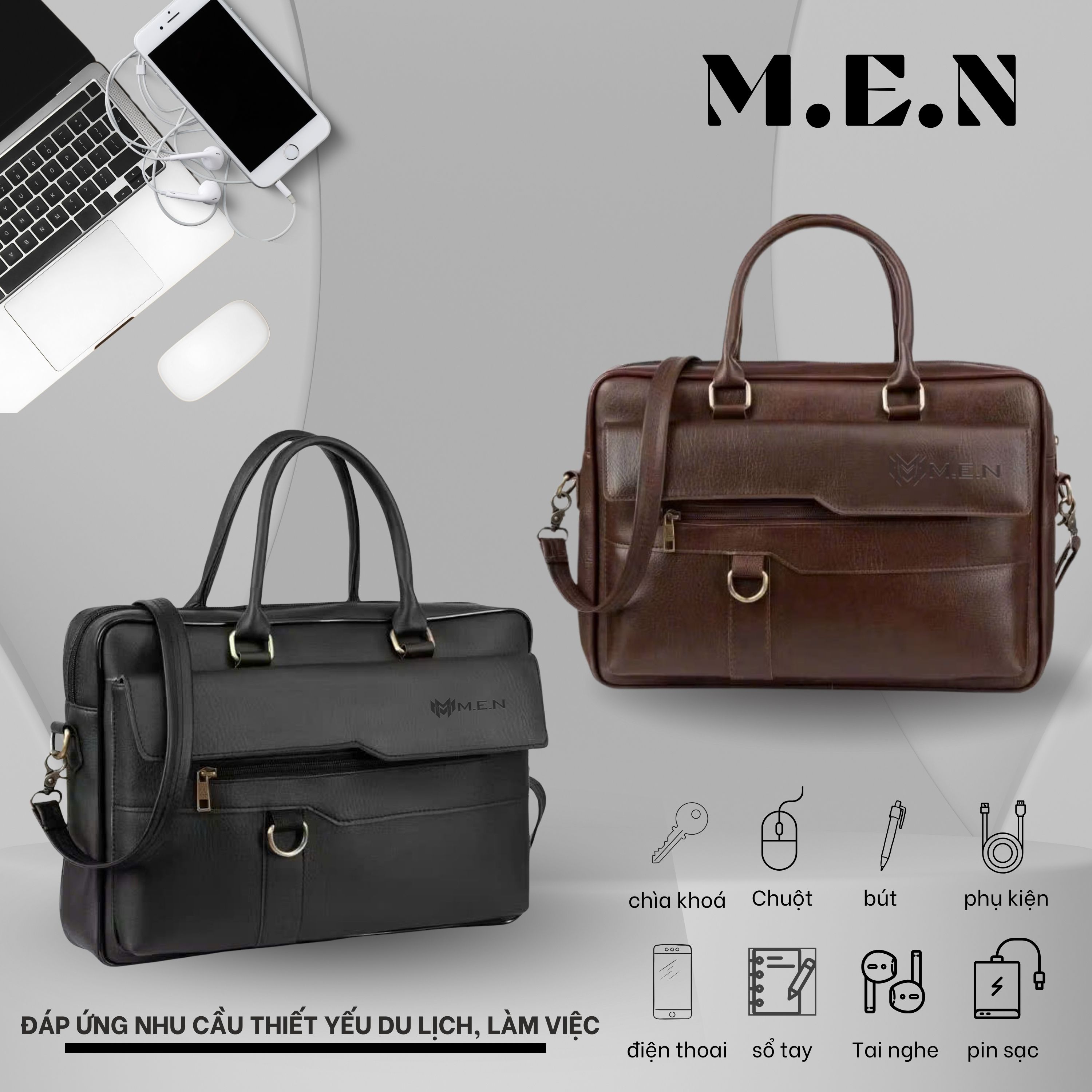 - Cặp da công sở from to dựng laptop 15 -16 inch nhiều ngăn trong