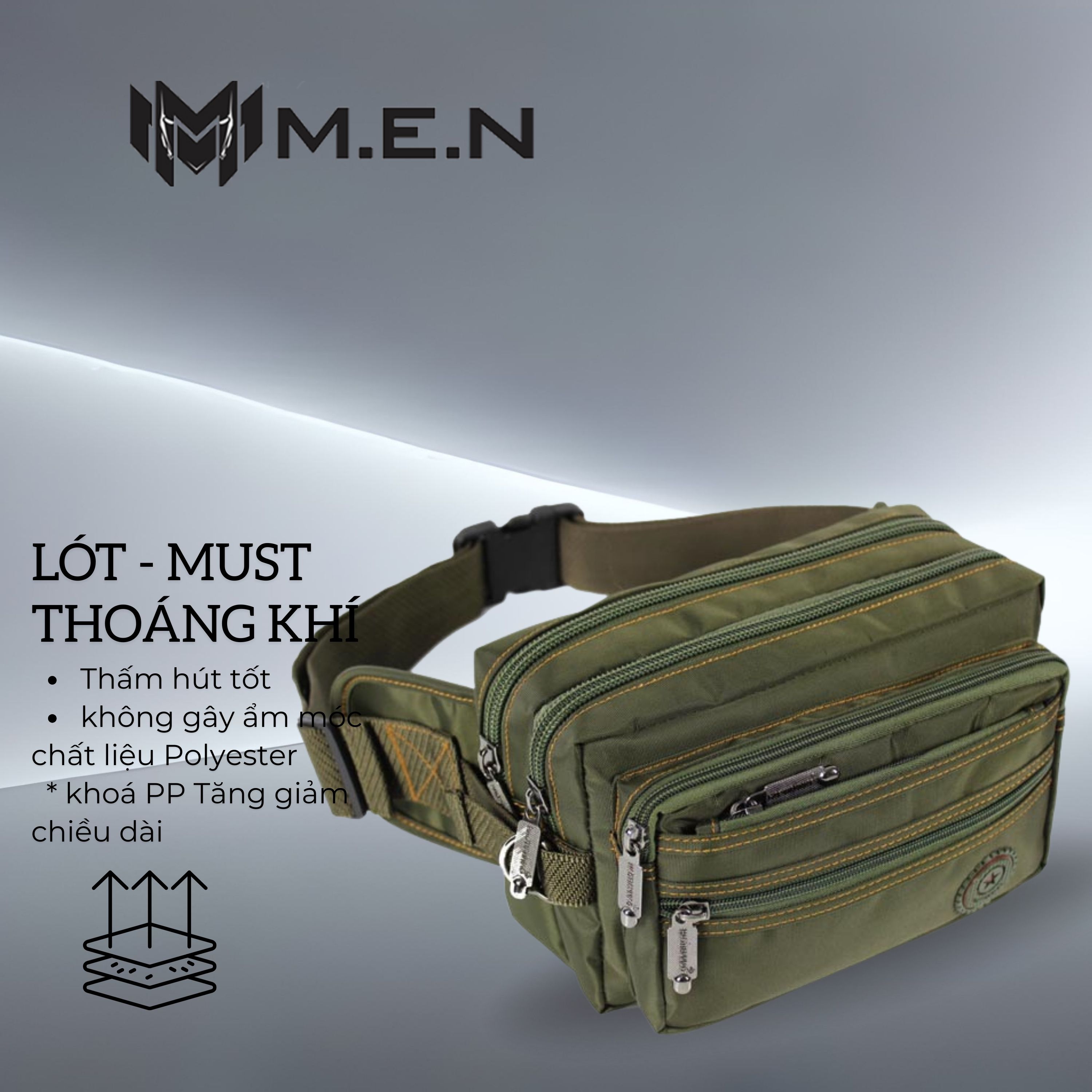 + Dây đai quai mang được may bằng loại dây có bản dày 4cm, chiều dài 1,4m có thể tăng đưa theo ý muốn.