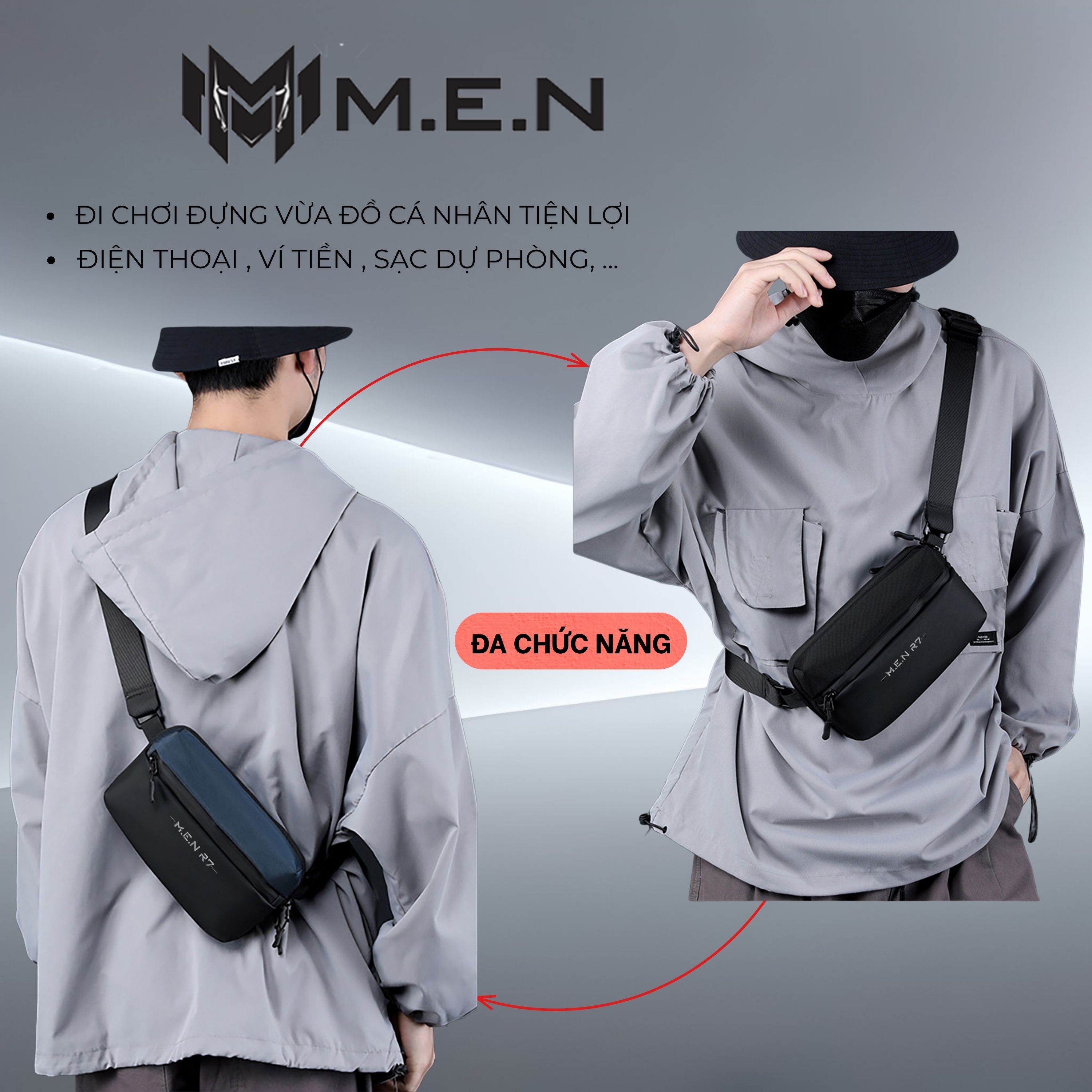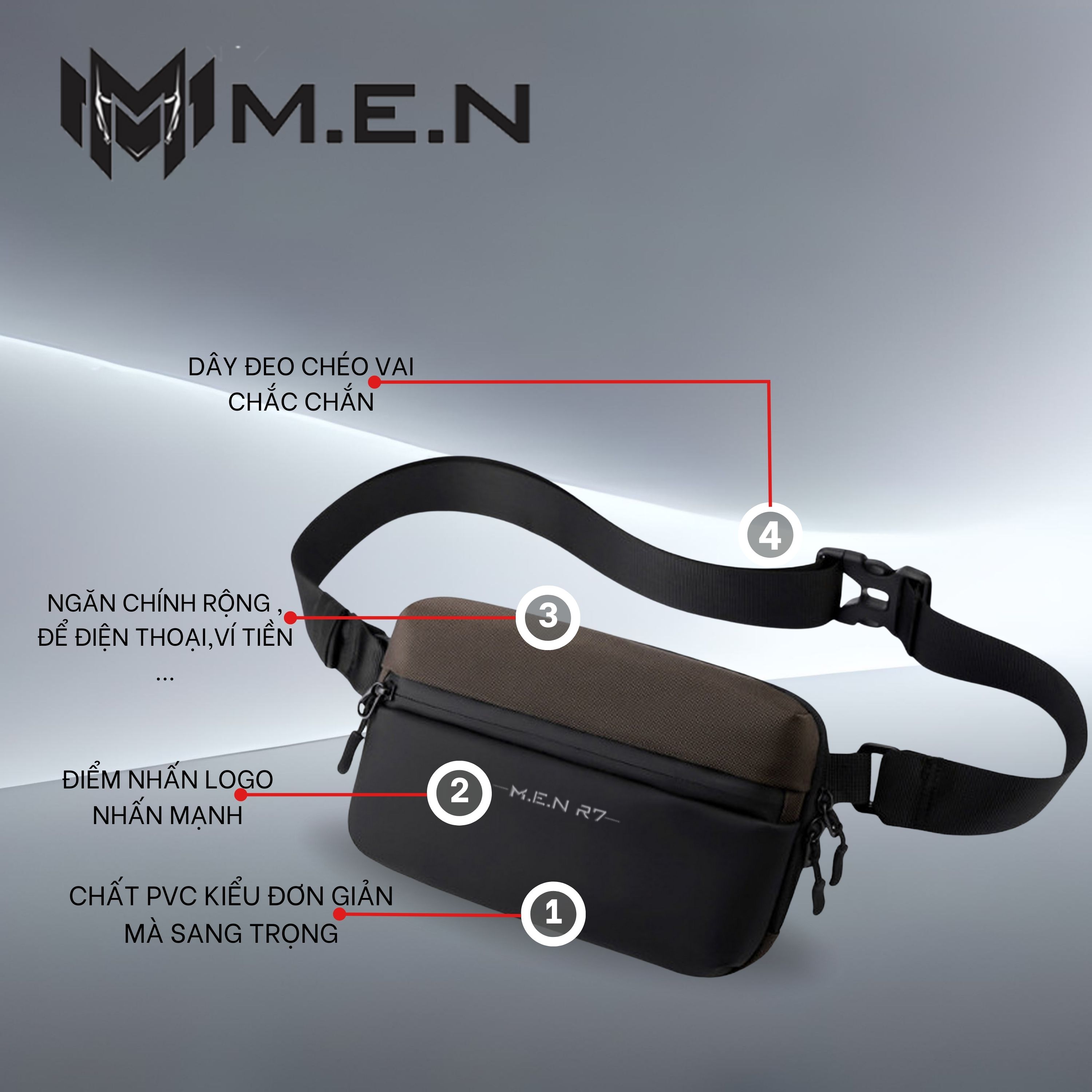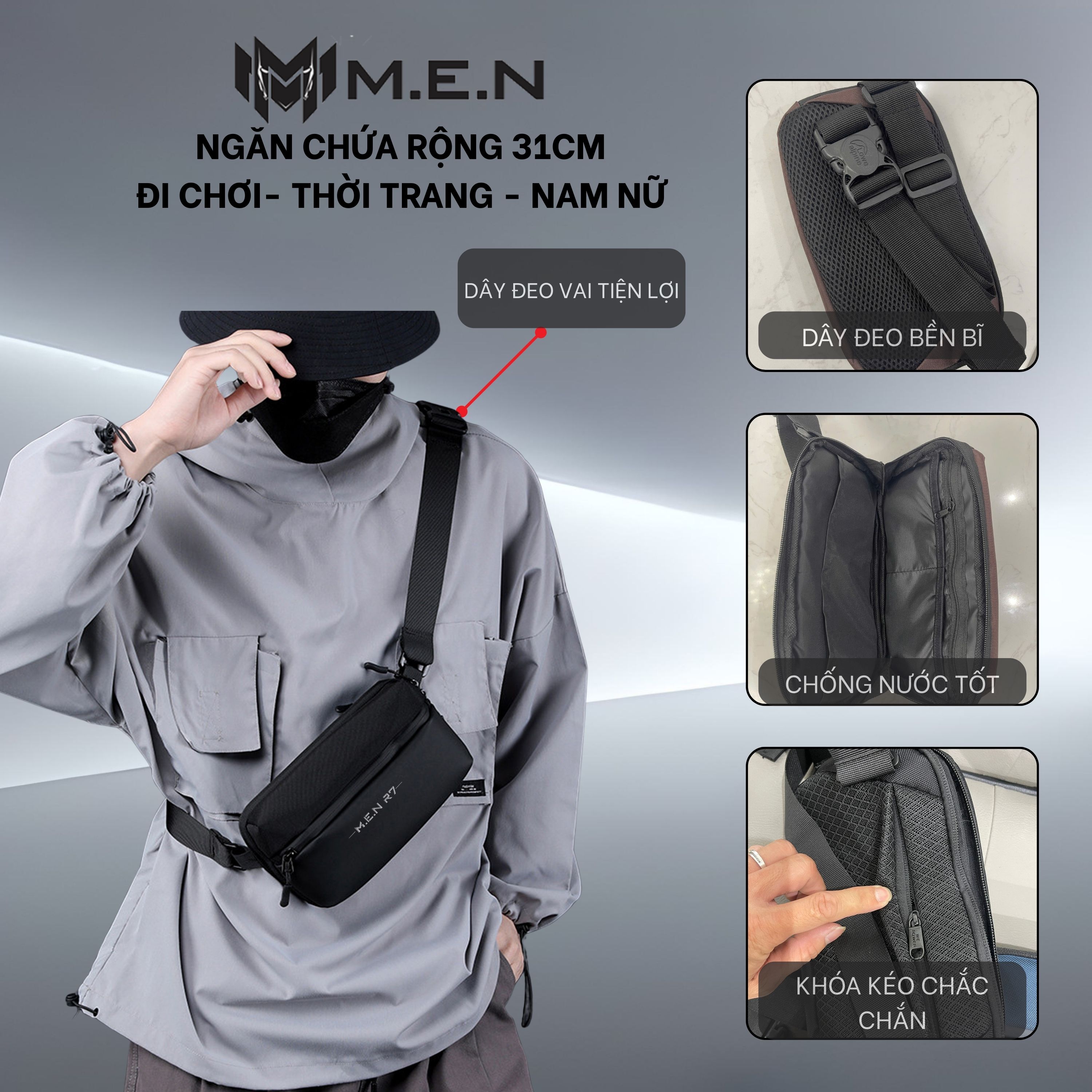 - Túi đeo chéo nam nữ thiết kế nhiều ngăn có thể đựng được một số đồ dùng cần thiết như: Ví tiền, chìa khóa, tai nghe