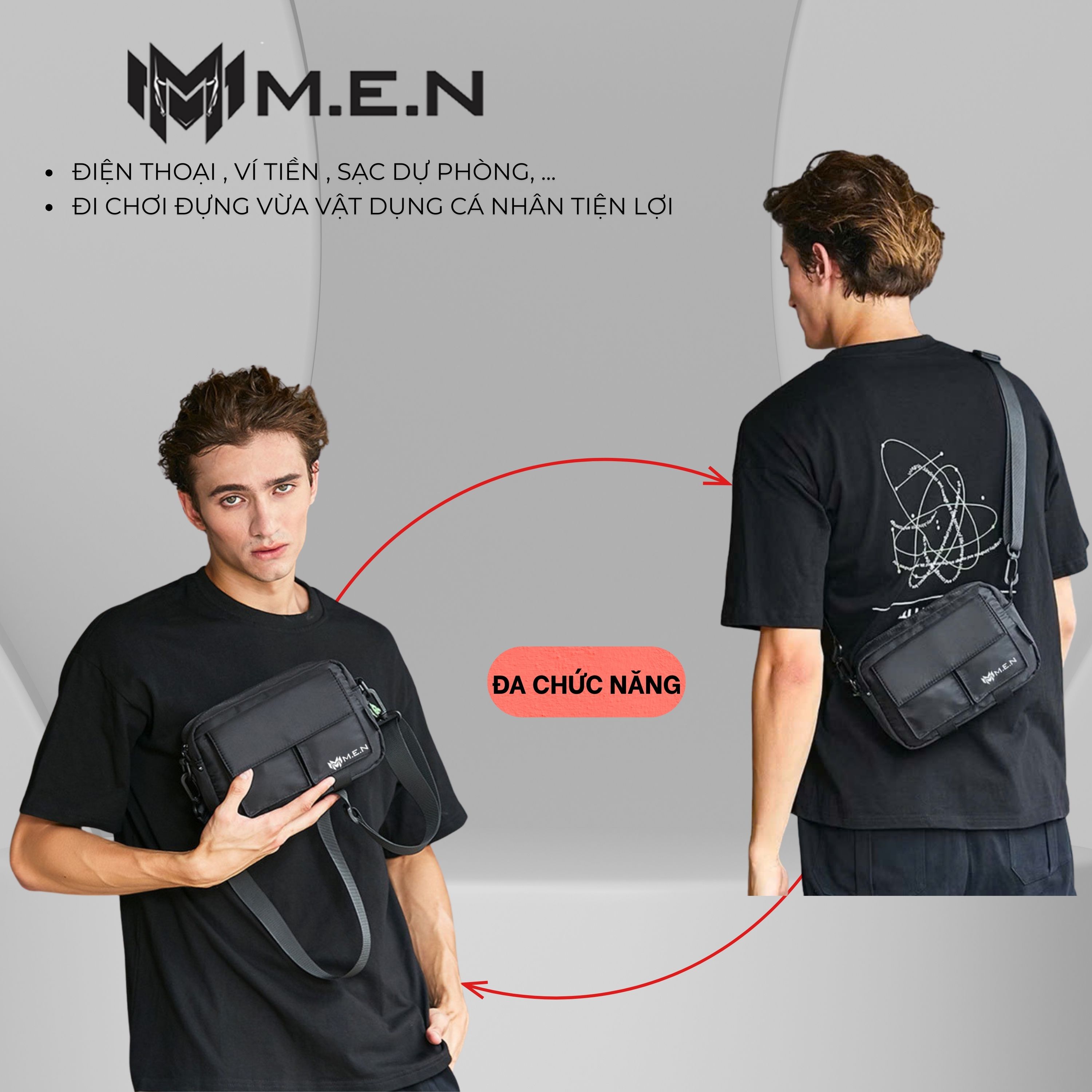 - Túi đeo chéo nam nữ thiết kế nhiều ngăn có thể đựng được một số đồ dùng cần thiết như: Ví tiền, điện thoại, chìa khóa, tai nghe, sạc dự phòng