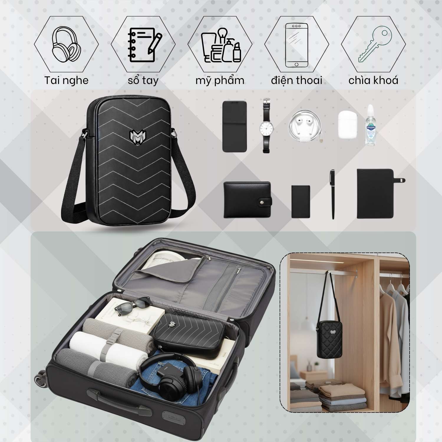 ⇒ Công Dụng: Đi chơi, du lịch,...Ngăn lớn chứa điện thoại Card chìa khóa, Phone,...