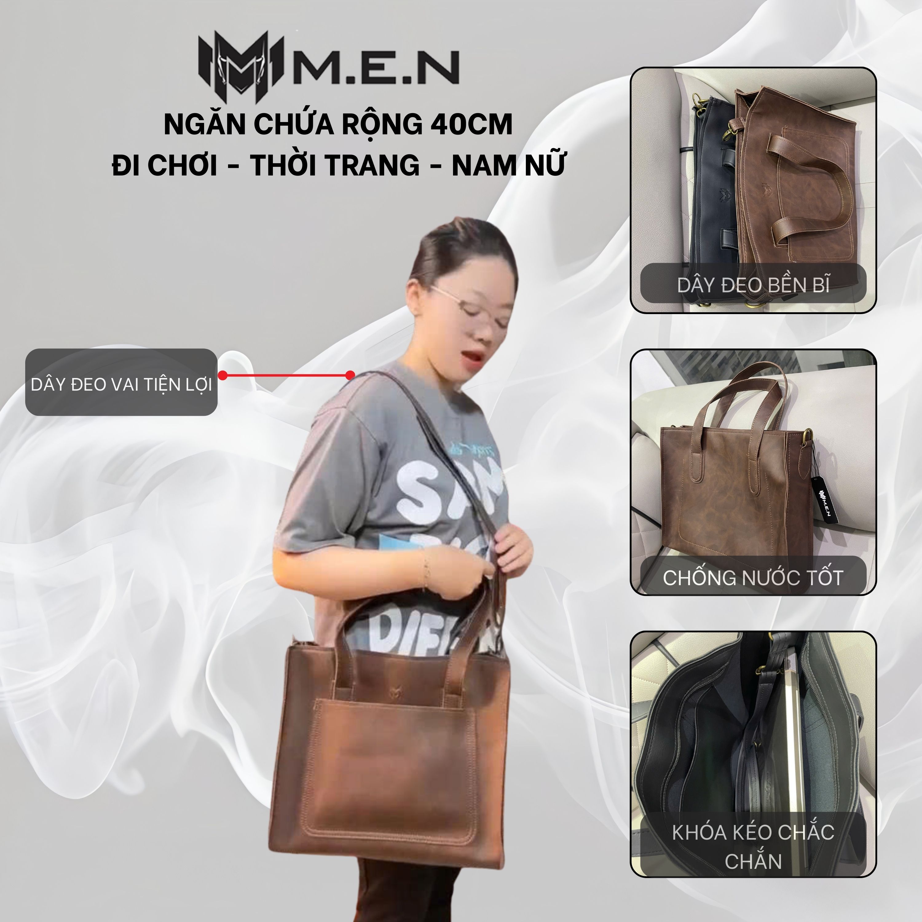 ⇒Kết cấu: có ngăn nhỏ lớp lớt bên trong có khóa kéo, dây đeo có thể điều chỉnh.