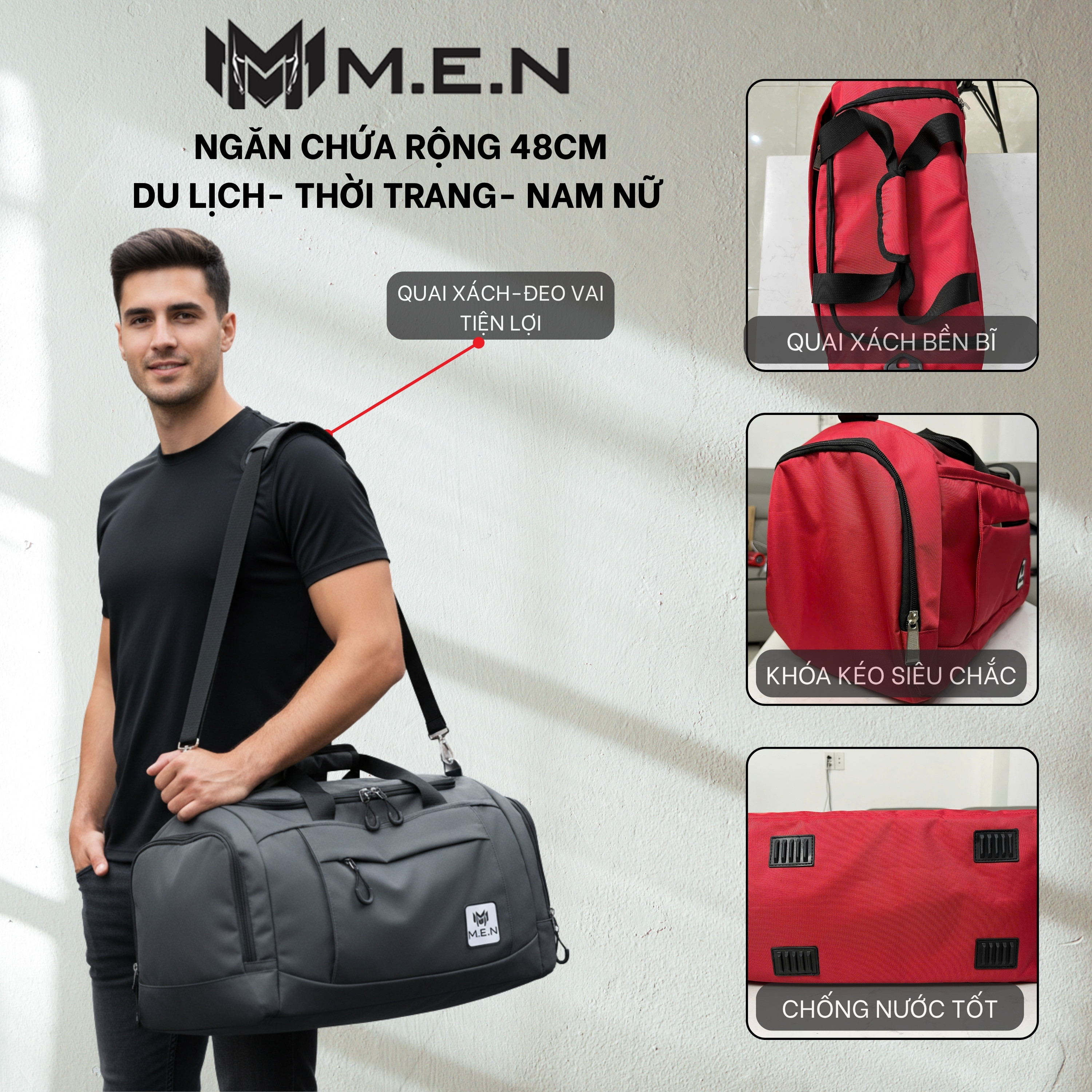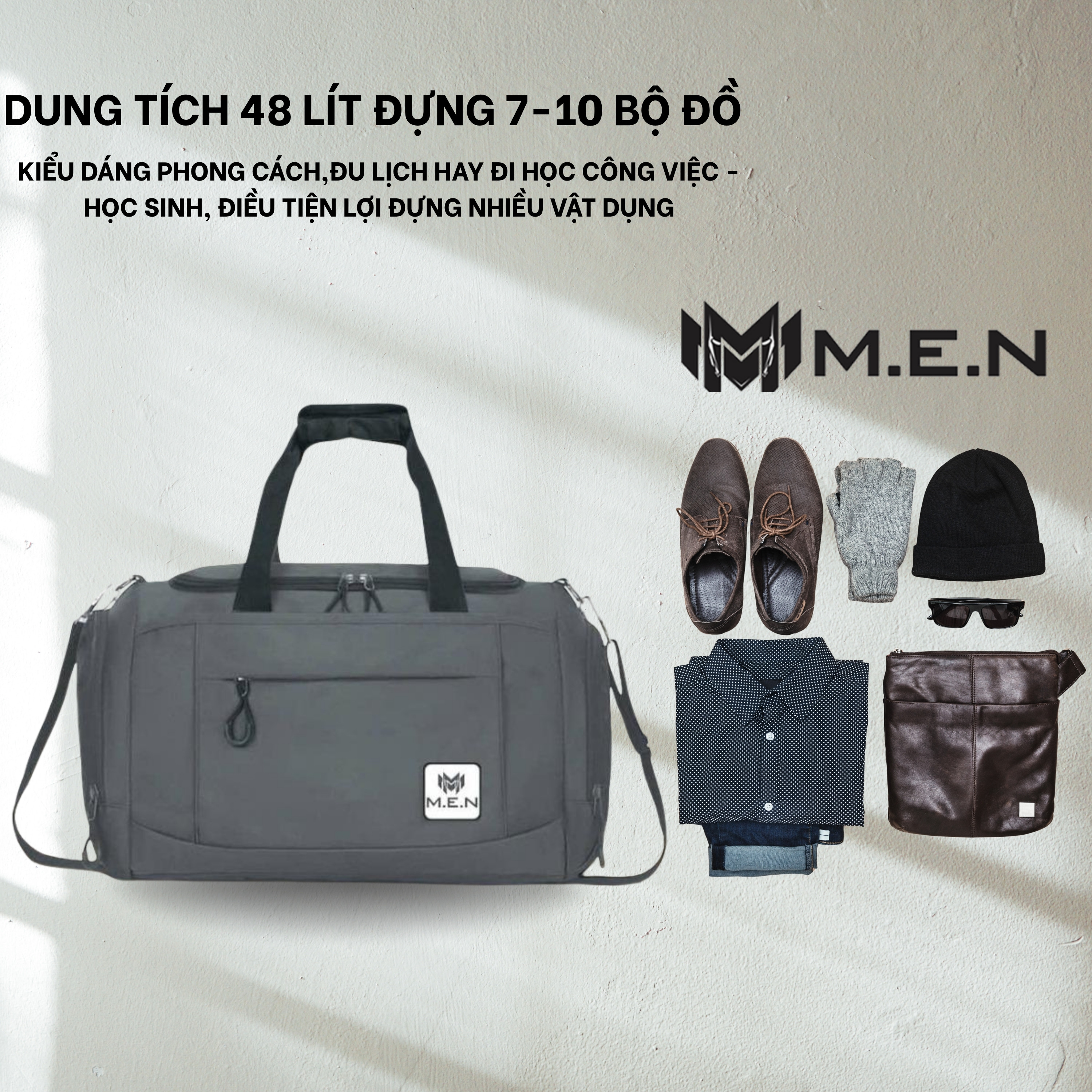 Túi trống du lịch chống thấm nước M.E.N DRUMB có ngăn để giày riêng 3 màu D978