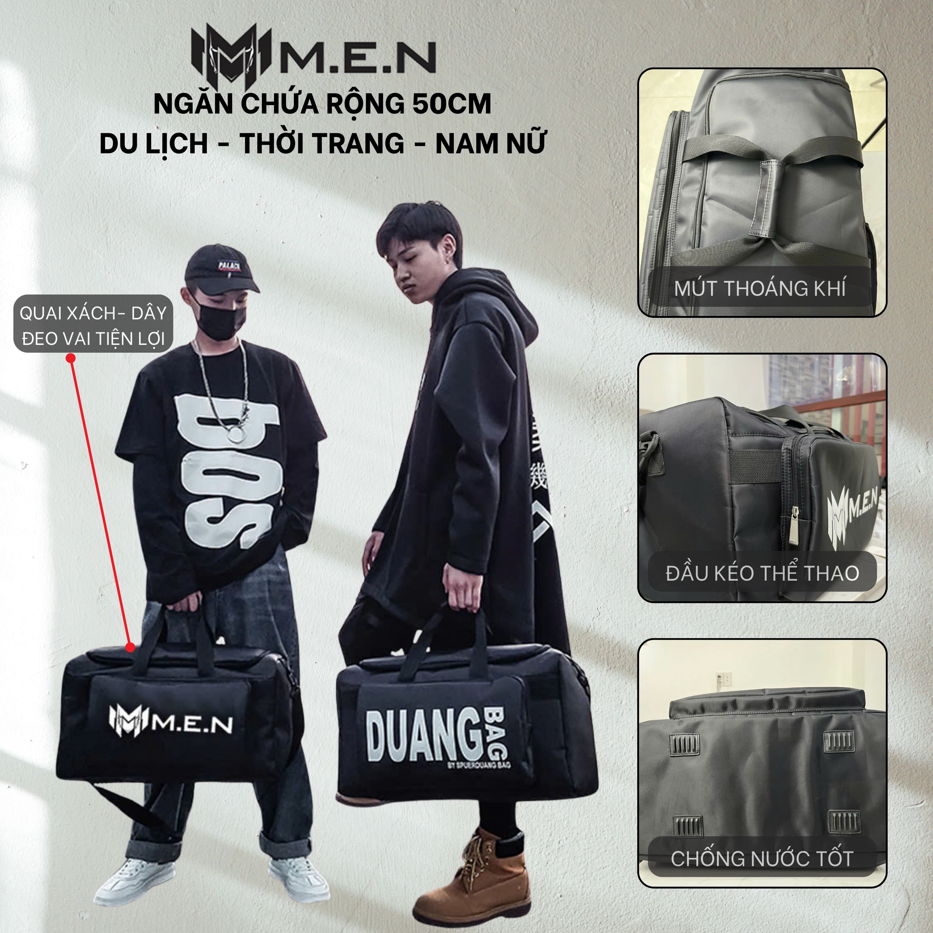 Túi du lịch hành lý cỡ lớn 50 cm DUQA cao cấp với loại vải dù ngoại nhập. Bề mặt vải polyester dù bóng trượt nước chống thấm và mặt trái vải có lớp pvc giúp tăng cường chống thấm tốt vô bên trong và làm tăng cường độ bền vải được tốt hơn. Toàn bộ thân túi và hông bên trong dùng vải dù lót pu mềm mại chống thấm, có độn lót thêm lớp mút giúp túi được êm và có khung đứng cứng cáp. loại chất liệu này rất mềm, và dai có độ bền tốt và khả năng chịu lực cao, chống rách. Do đó, chất liệu này được sử dụng khá phổ biến hiện nay trong rất nhiều ngành công nghiệp may xuất khẩu sang nước ngoài cho ngành túi xách du lịch chống thấm nước.